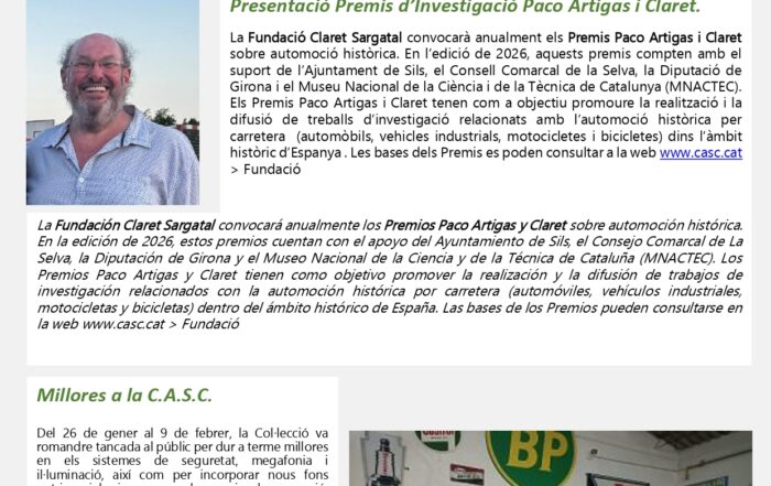 A causa de feines de reformes, instal·lació de llums i equips, la col·lecció d'automòbils Salvador Claret romandrà tancada fins al 6 de febrer. El [...]